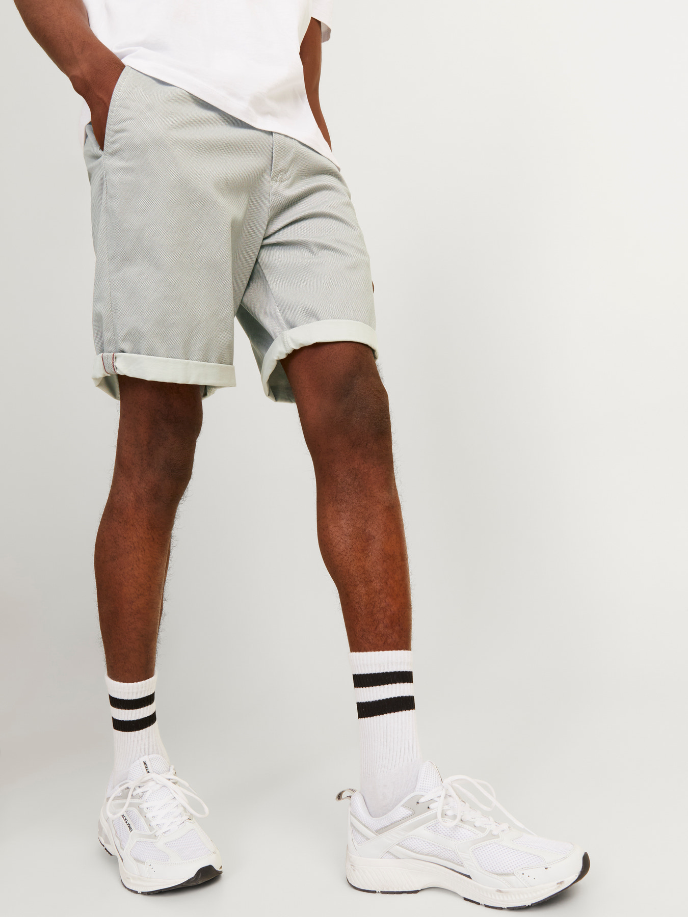 Waarschijnlijk ken je de standaard uni Bowie shorts al van Jack&Jones, maar de printed hebben een toffe AOP erop. Het model is het zelfde als de normale Bowie; een mooie chino, gemaakt van katoen, een kleine toevoeging van elasthaan maar een mega zachte en soepele kwaliteit. De Printed shorts hebben we in Oyster Mushroom en Navy Blazer.