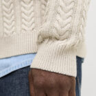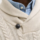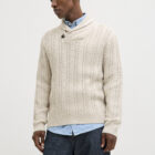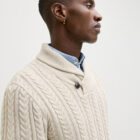 Kabeltrui met shawlkraag in een acryl/katoen mix.