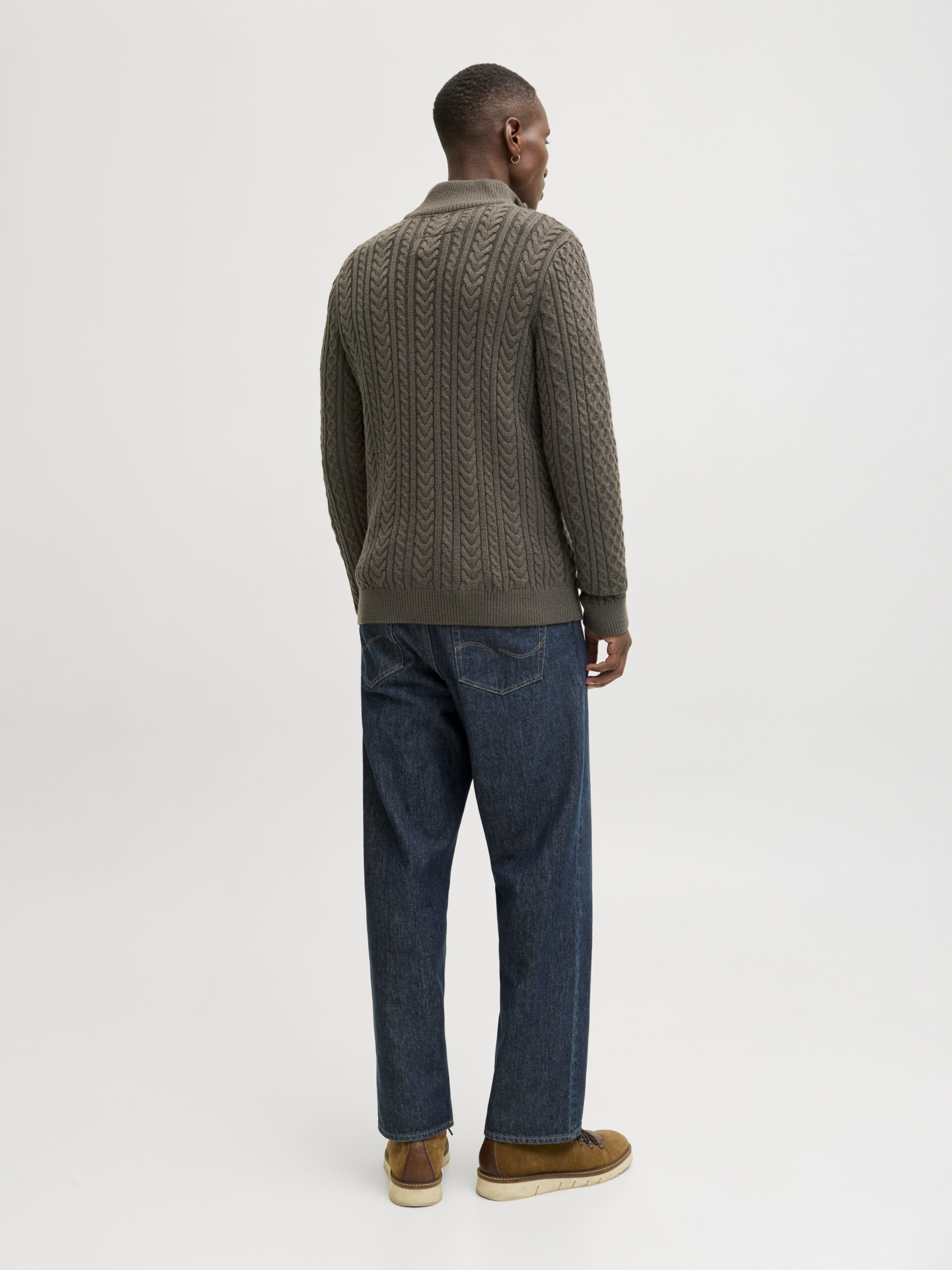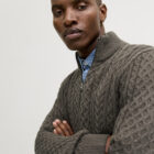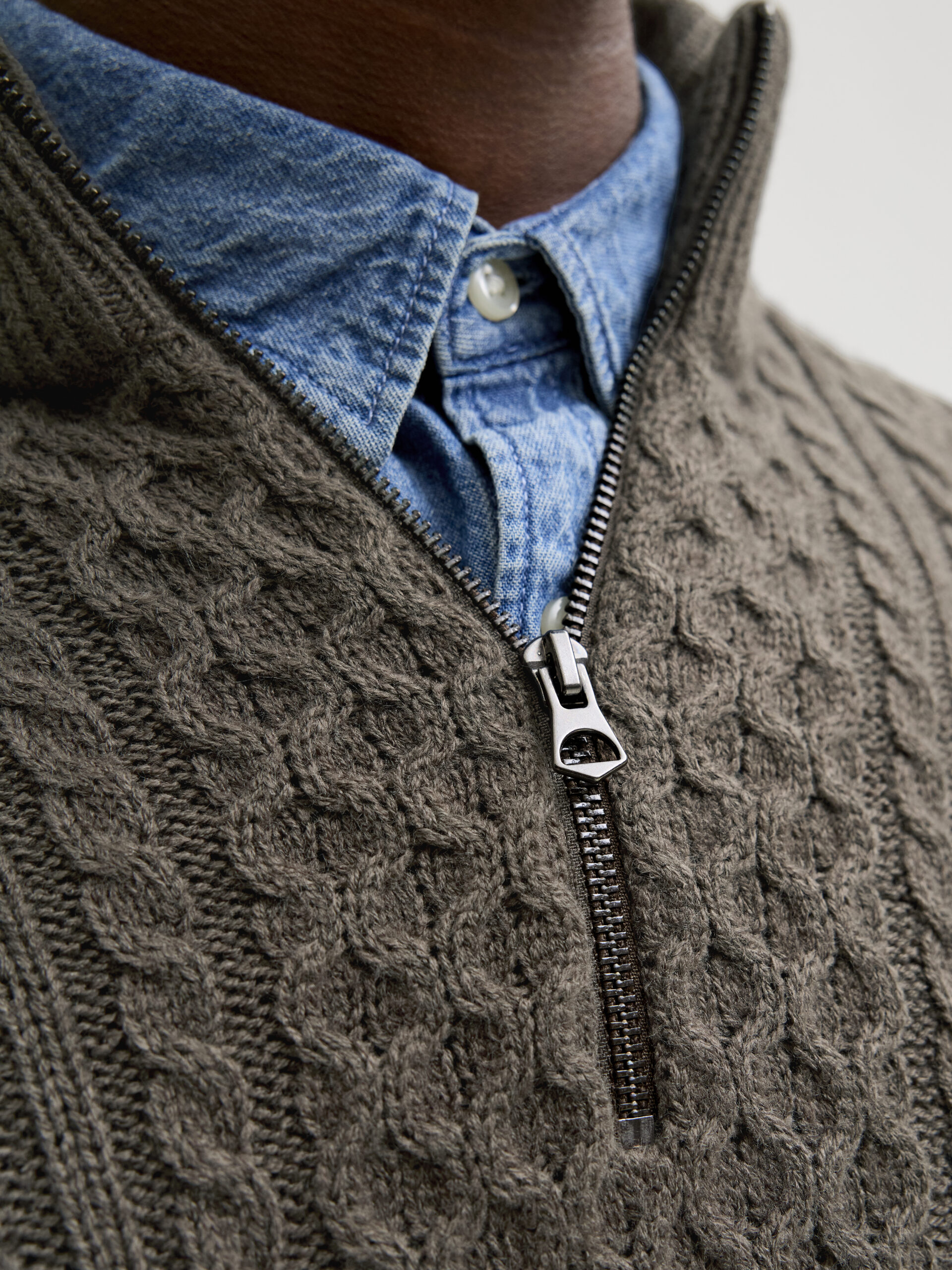 Kabeltrui met schipperskraag in een acryl/katoen mix.