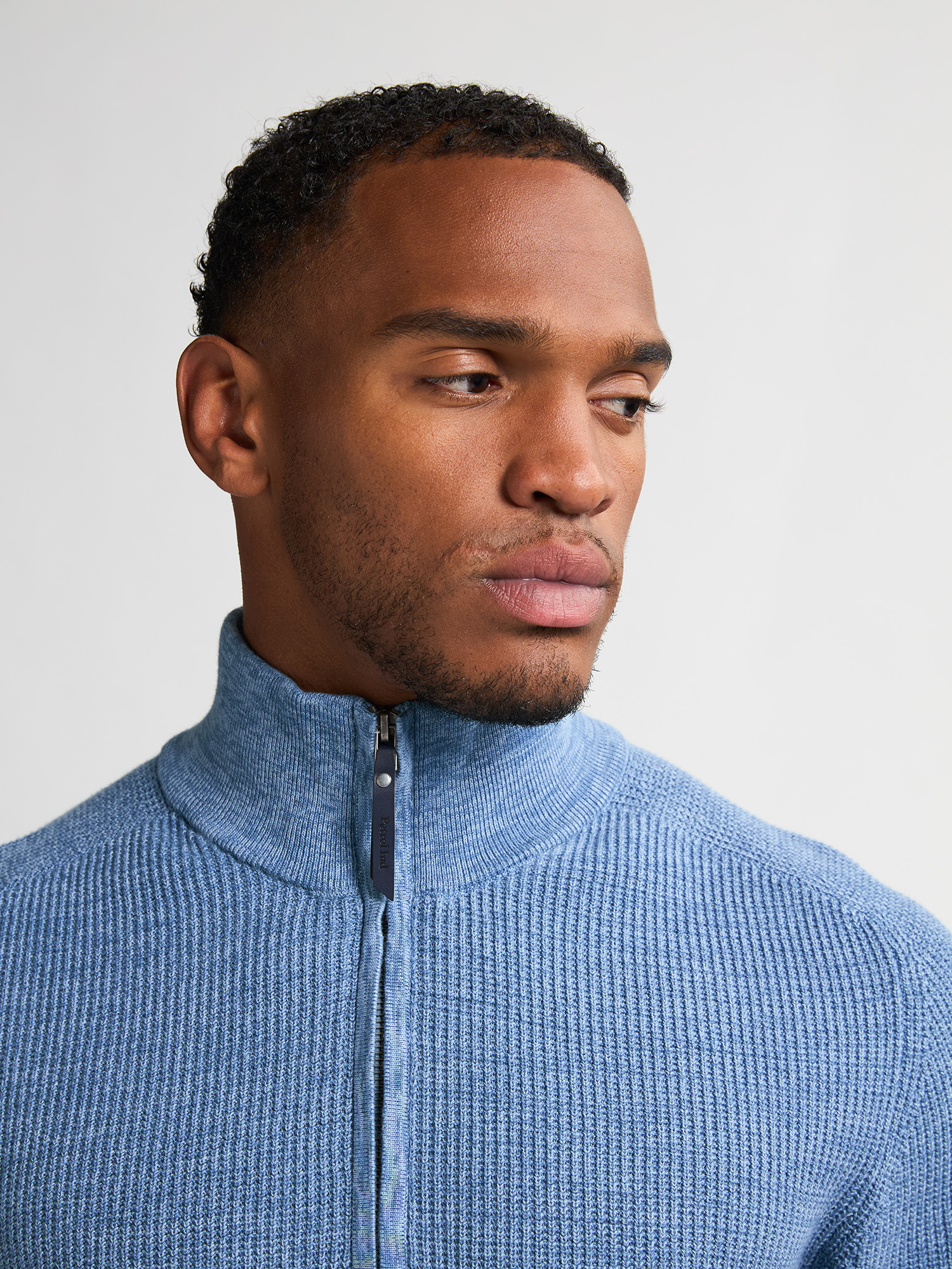 Halfzip trui met een opstaand boord in lekkere frisse blauwe kleur.