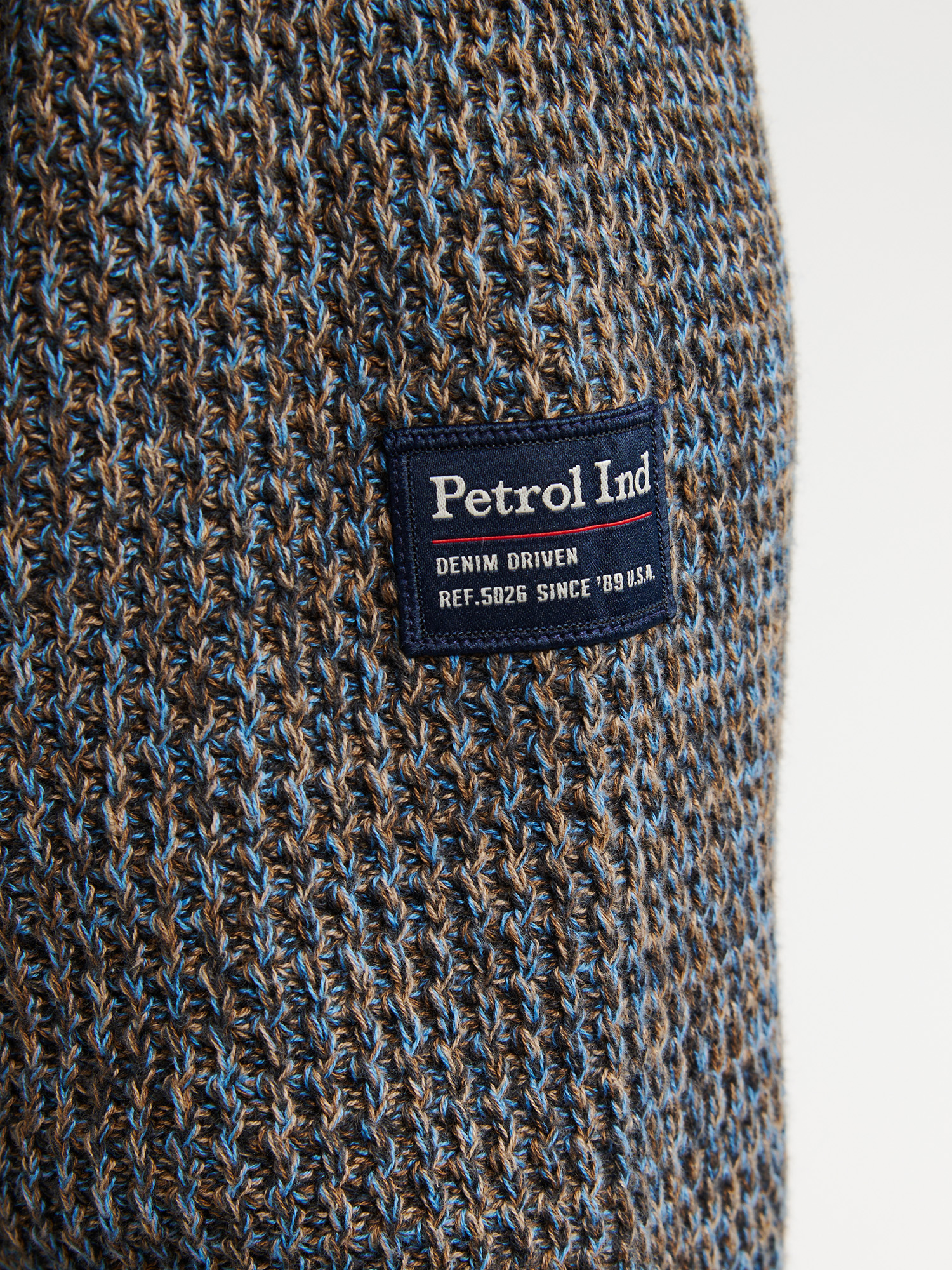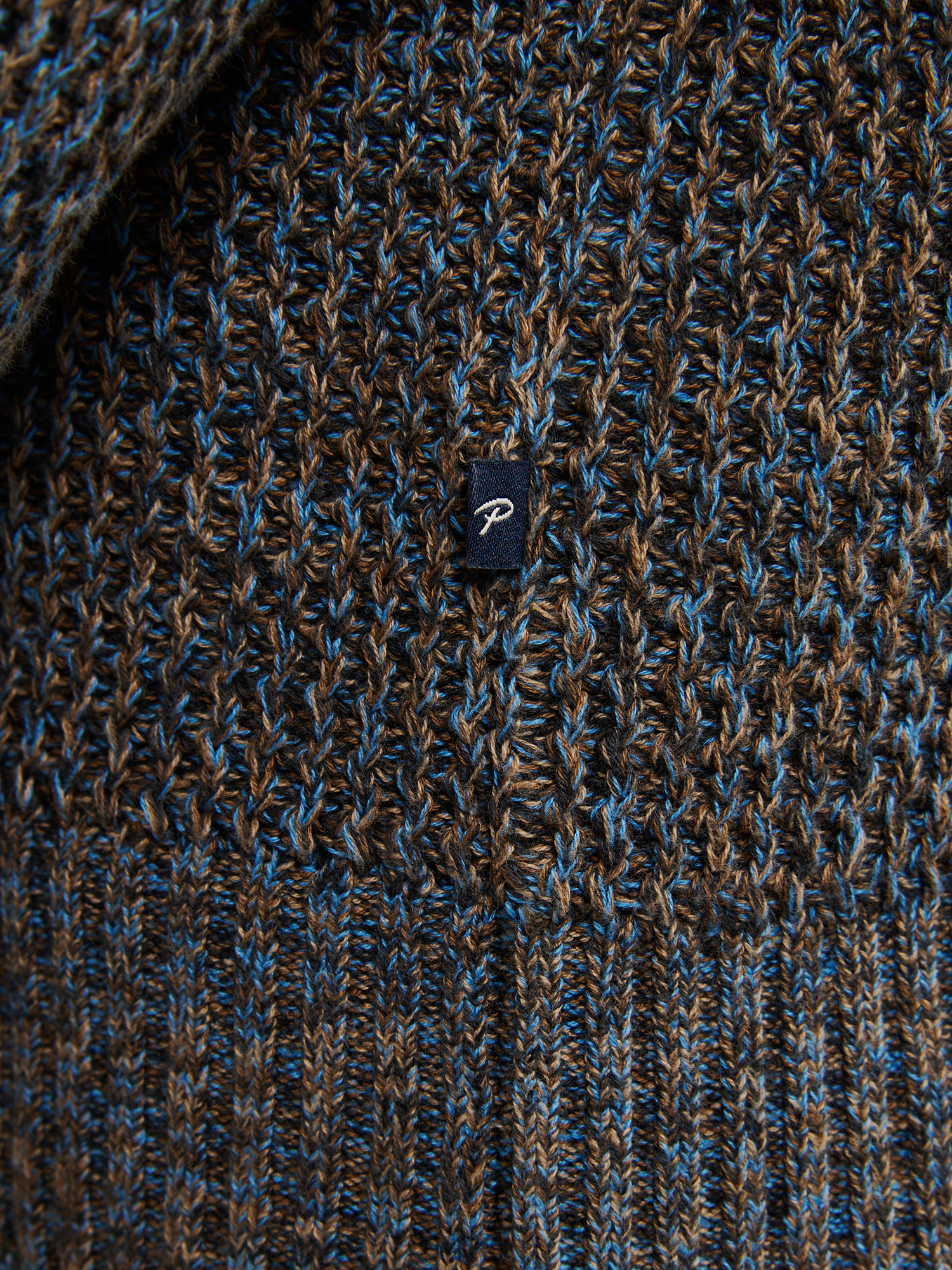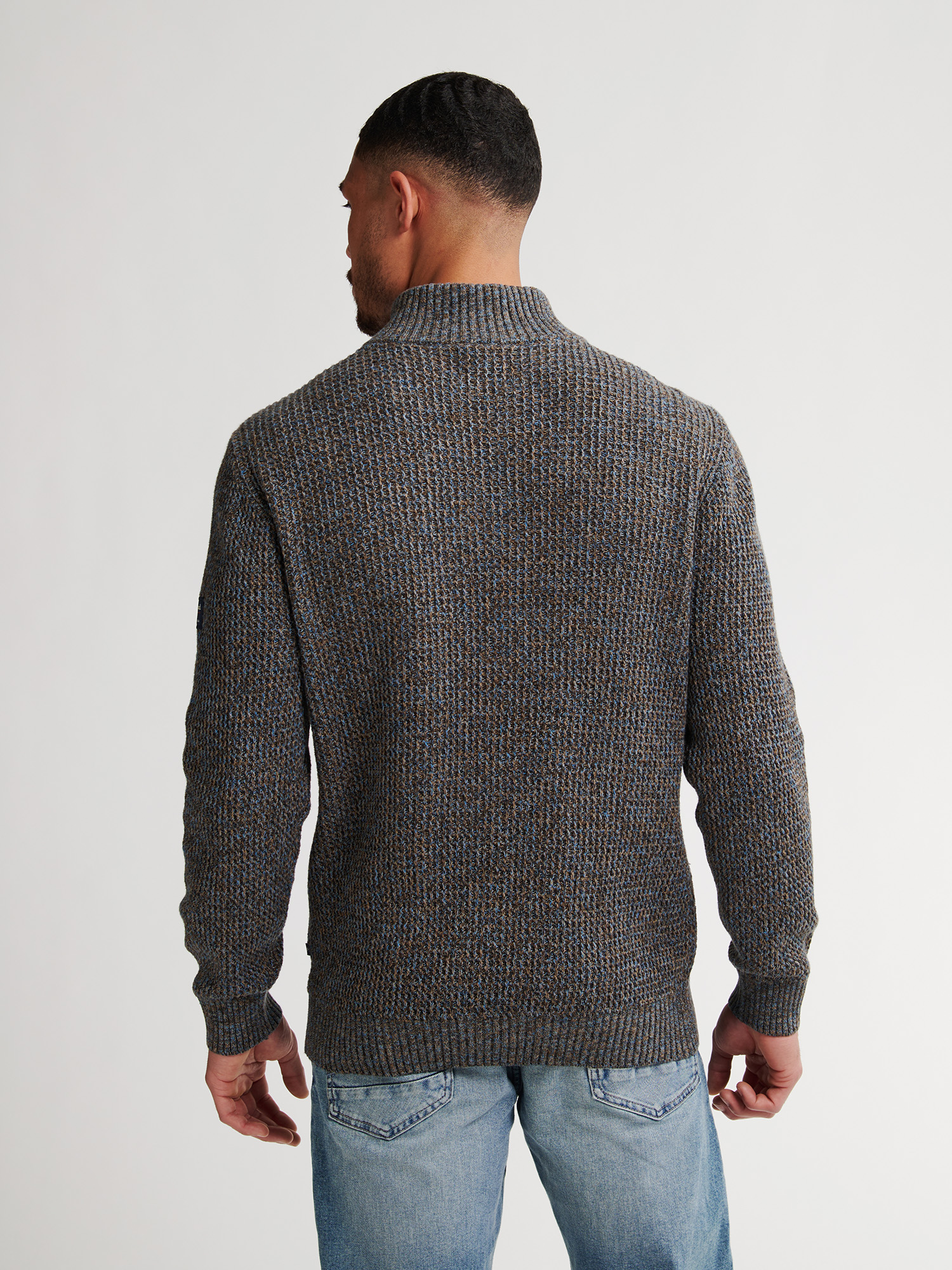 Halfzip trui van 100% katoen. De melee van bruin en blauw en de ribbel die erin geweven is geeft hem een stoer uiterlijk.