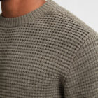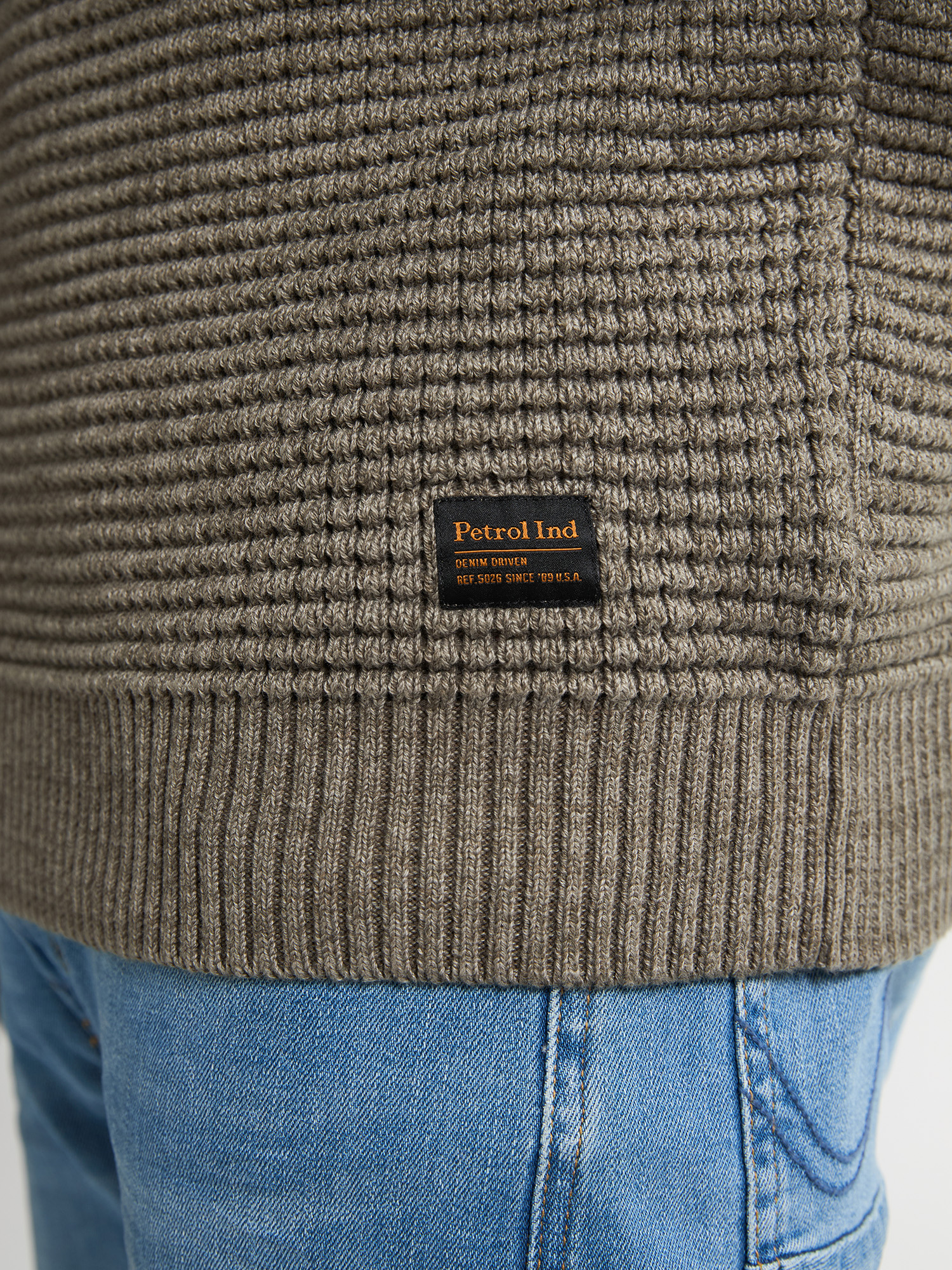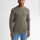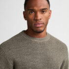 Toffe ronde hals trui in een armykleur, wat grovere brei maar niet extreem grof.