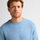 Ronde hals gebreide trui in een fris blauwe kleur….saaie kleuren in de winter?? Nee hoor, hoeft niet!