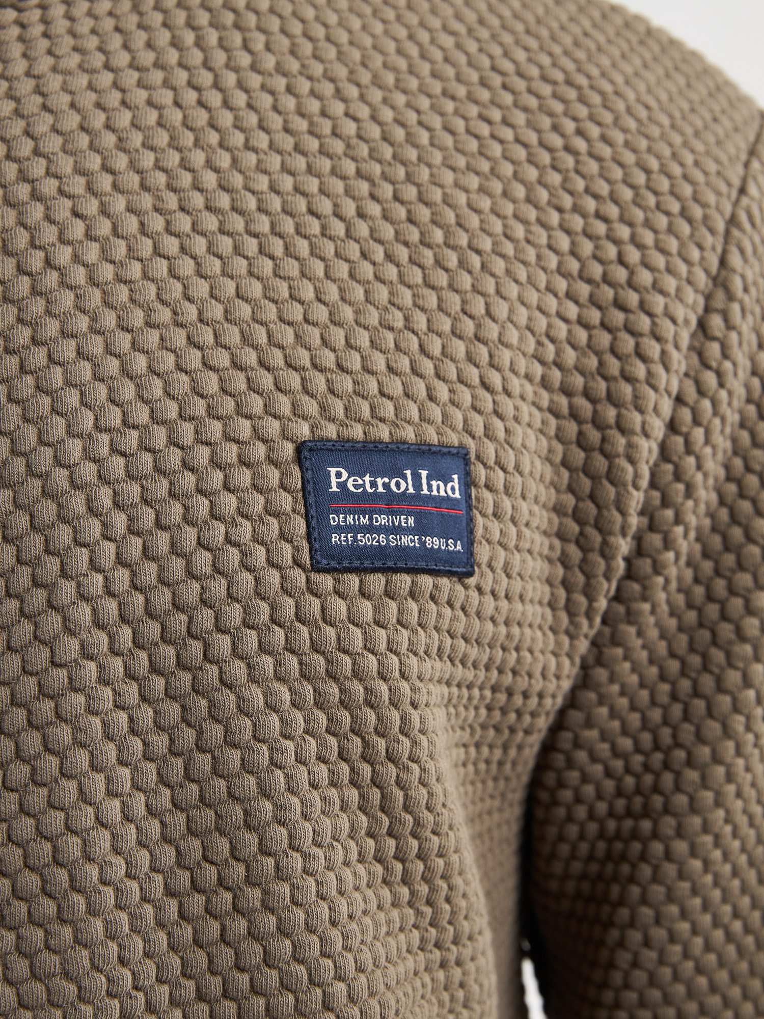 Katoenen vest met relief in de stof geweven.