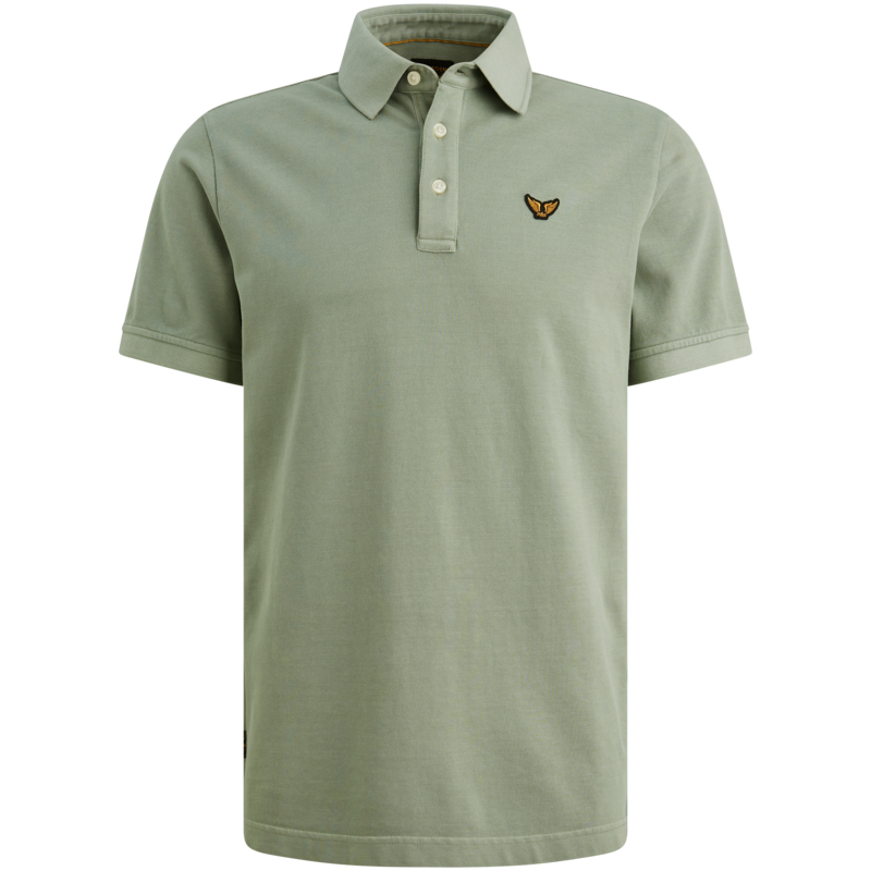Licht groene polo in een garment dye kwaliteit. Garment Dye wil zeggen dat de polo een gedragen/licht verwassen effect heeft, dat hoort zo 😉