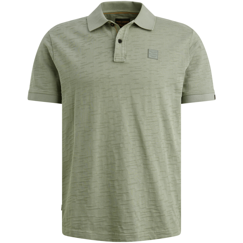 Effen lichtgroene polo met een releif streepjes effect in de stof.