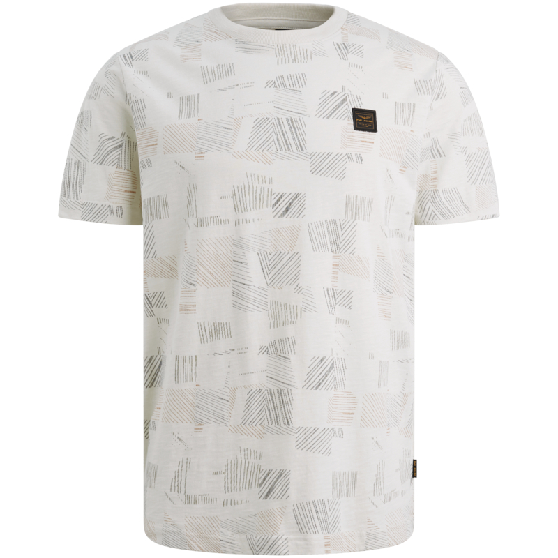All over printed t-shirt in ecru met zwart en brick.