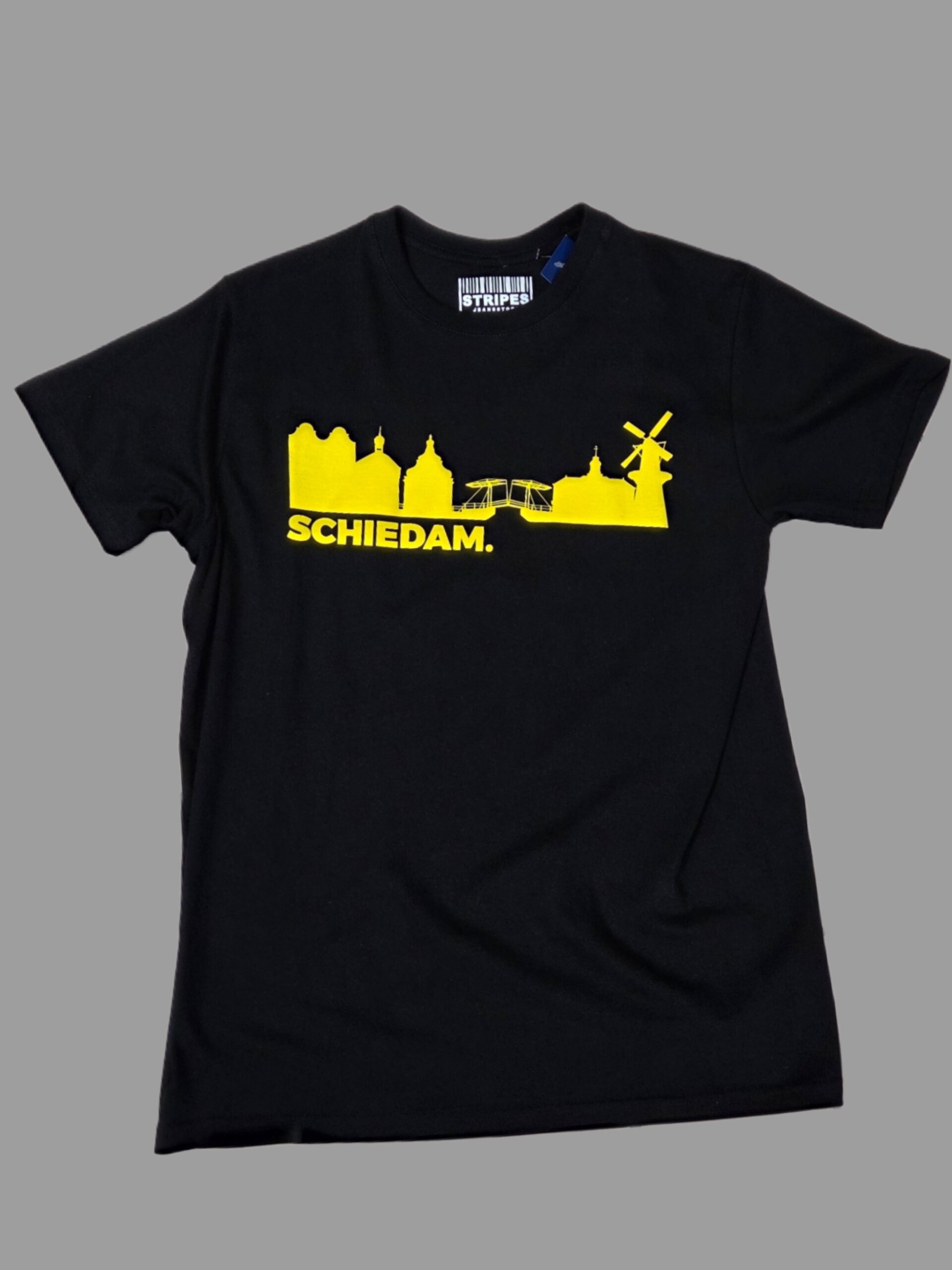 Uniek SCHIEDAM. t-shirt in de echte Schiedamse kleuren met een print van de skyline van Schiedam.