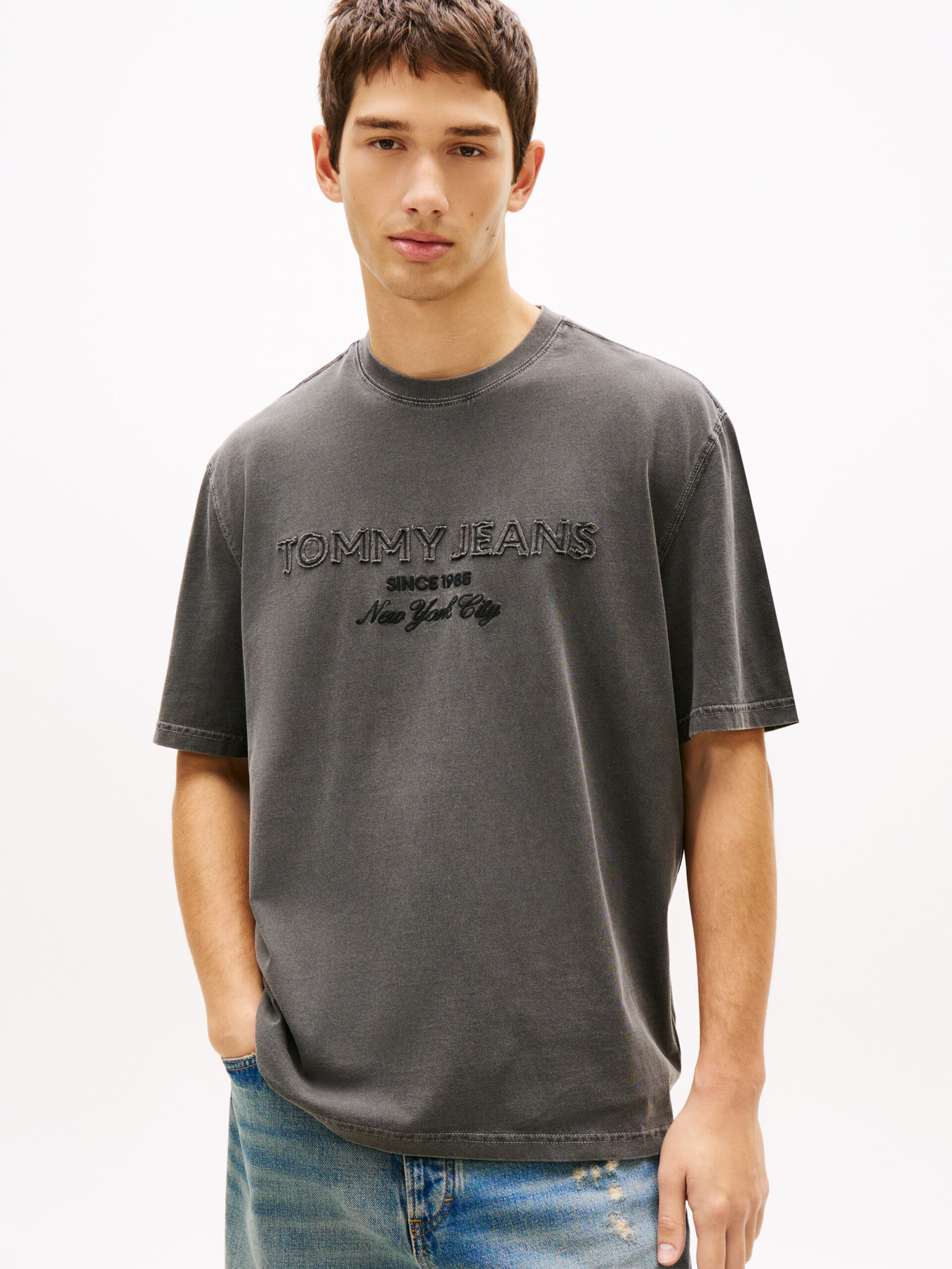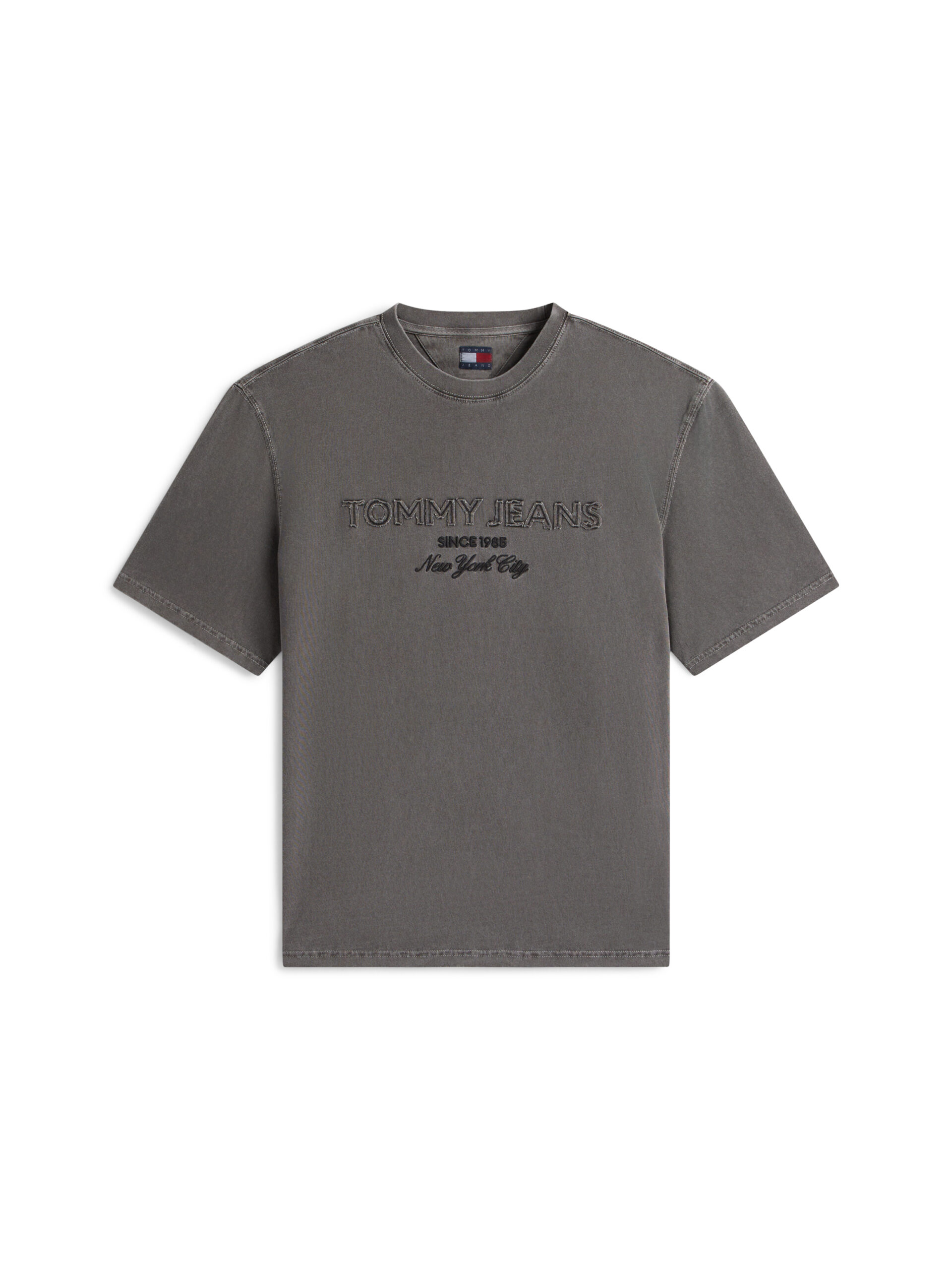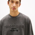 Dit oversized t-shirt van Tommy heeft een losvallende pasvorm. De schouders hangen lager dan dat je in de gebruikelijke fit ziet. Dit is wel echt de bedoeling omdat je hem ’te groot’ moet dragen. De kleur is een afgewassen zwart, alsof hij verwassen is….ook dat hoort zo. Op de borst zit de Tommy jeans tekst op het shirt gestikt.