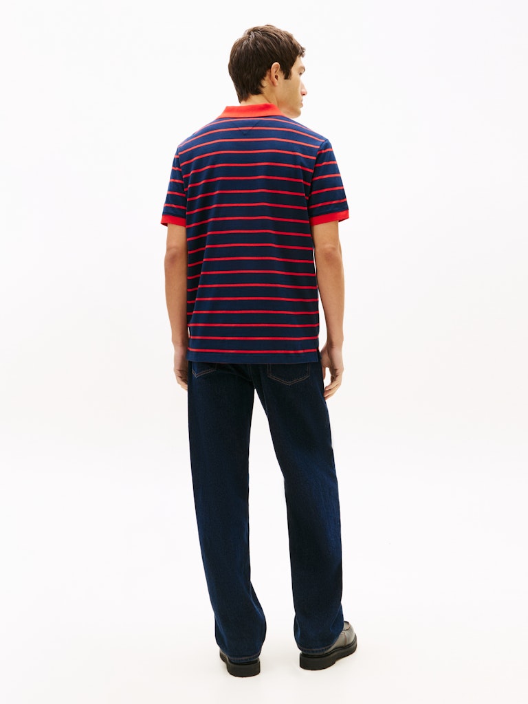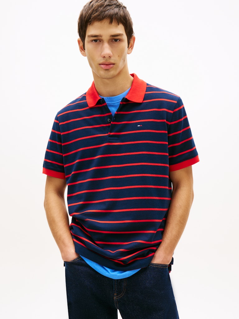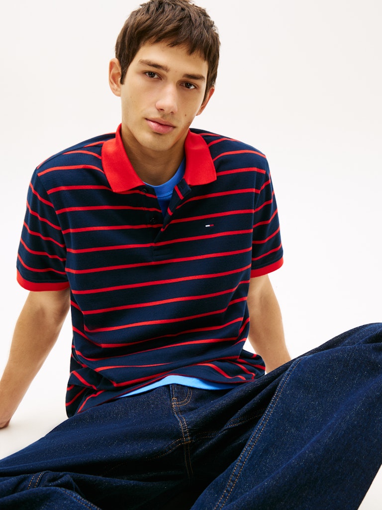 We gaan back naar de 90’s met deze retro polo. Een zachte jersey kwaliteit met een klassiek streepje, het is een regular fit, met een constrateerende kraag.